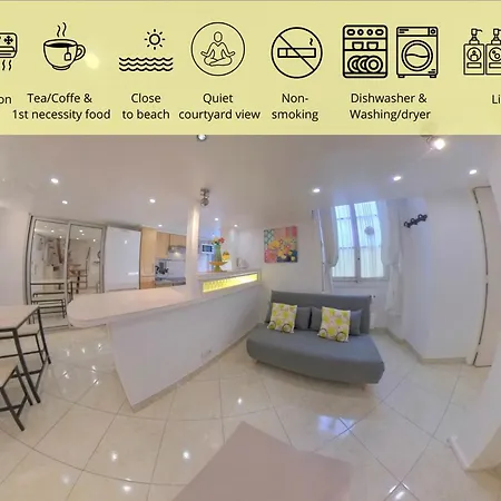 Den närmaste flygplatsen är Nice Cote d'Azur, som ligger 10 km från lägenheten. Här kan du också njuta av vindsurfning, snorkling och dykning.
